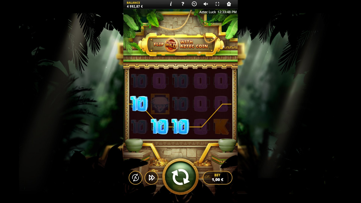 To awaken the gods, players must trigger the Coin Flip feature, this is when the aztec coin symbol lands on the reels, it flips to a wild and offers free spins.