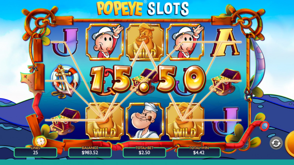 Popeye Slots includes various bonus features such as Olive Oyl Wilds which land on reels two, three and four and expand to cover the entire reel height.