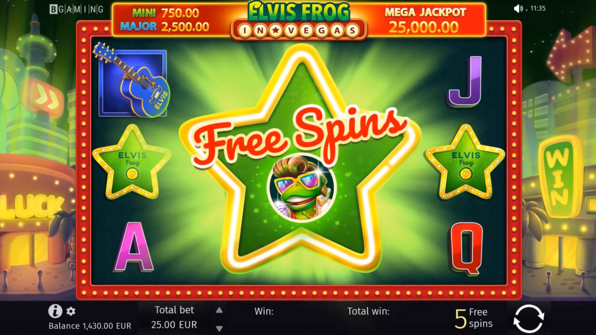 Elvis Frog is a wild symbol, which substitutes for all symbols in the winning like, except scatter and coin symbols.