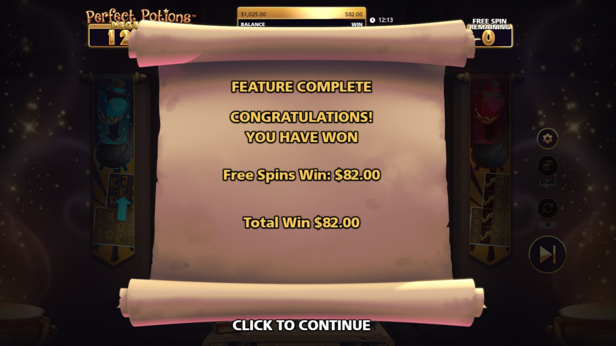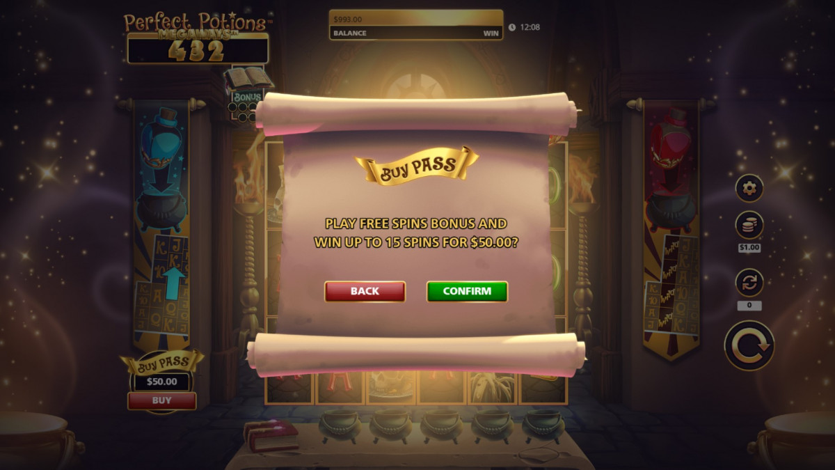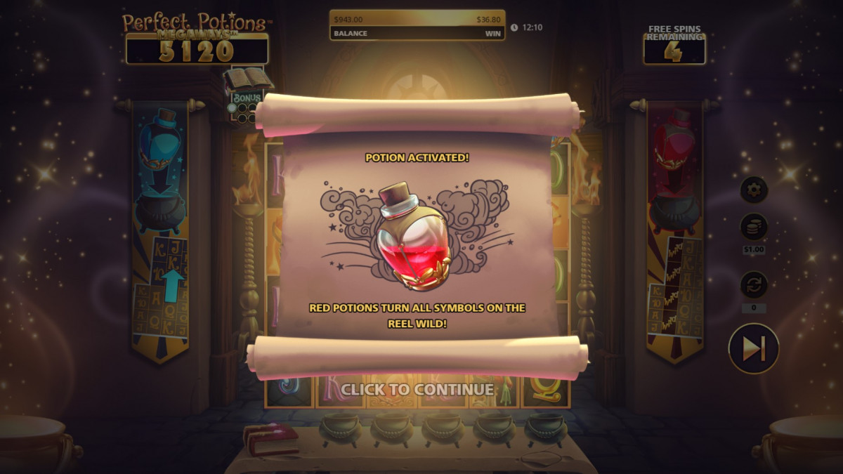 On each spin, between one and five potions, either red or blue, will randomly appear above reels two to six. During every spin, after the winning combinations are removed, each potion will drop down to the lowest available position on its reel.