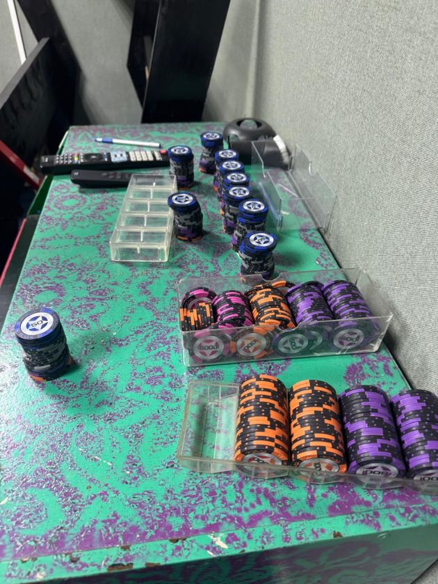 Officers said they seized two poker tables, chips, decks of cards, banknotes, two laptops, and 18 mobile phones.