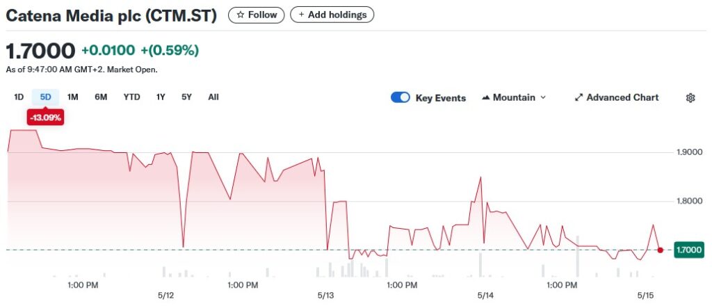 The Catena Media share price has hit a historic low, settling at just over 13% down at the time of writing.