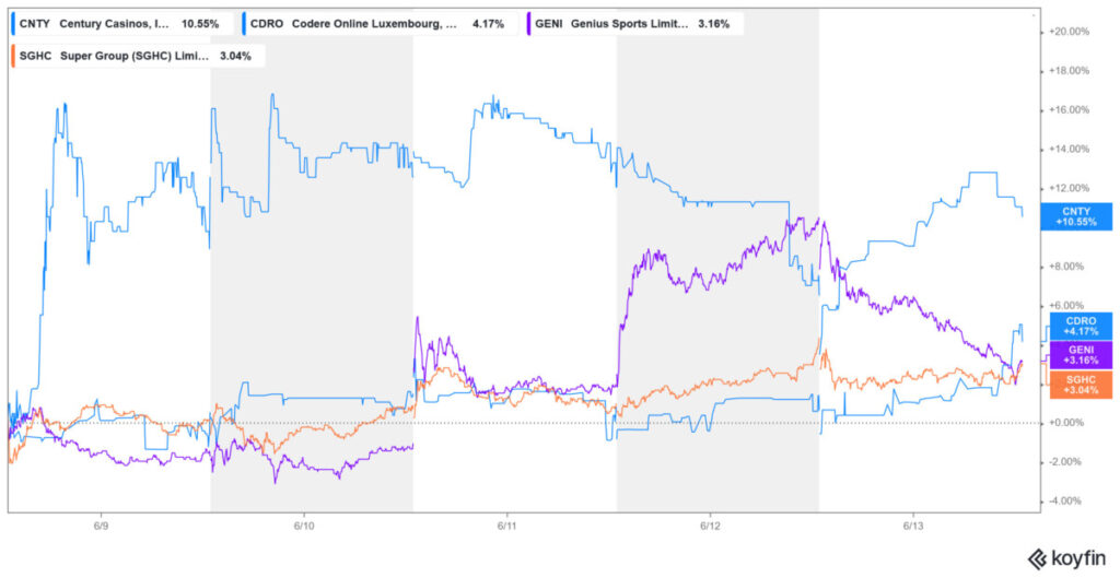 With a gain of 10.5%, Century Casinos was the biggest gainer among leading gaming stocks last week. The stock rose by almost 3.8% on Friday, despite broader markets dipping due to increasing tensions in the Middle East.