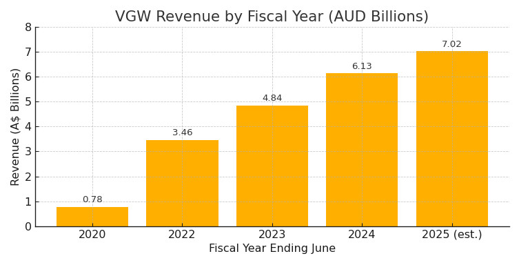 VGW has posted strong results in recent years. In FY2024 (ending June 2024), it reported A$6.1 billion in revenue, up 27% YoY. The net profit was A$491.6 million, a 33% YoY. In the previous fiscal year, VGW reported a 40% increase from 2022.