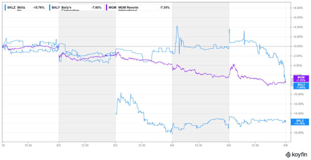 Gaming stocks lost momentum last week, and the Roundhill Sports Betting & iGaming ETF (NYSE: BETZ), which invests in a basket of gaming companies, lost 1.9% as economic worries resurfaced after a tepid August jobs report that showed the US economy added only 22,000 jobs last month, which was less than a third of what economists were expecting.