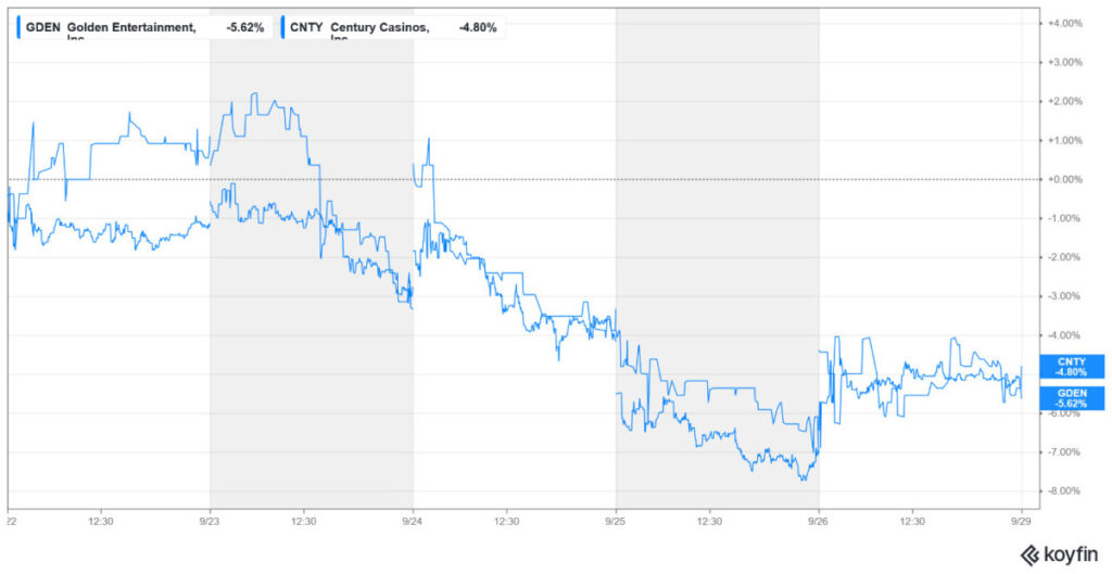 Golden Entertainment fell 5.6% last week. It went ex-dividend on September 25, and it is typical for a stock to drop by an amount roughly equal to the dividend on its ex-dividend date, as new buyers are no longer entitled to the upcoming payment.