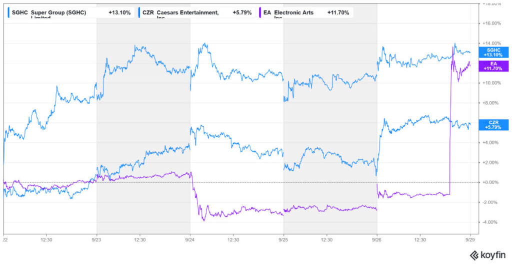 Electronic Arts was among the other major gainers last week, rising 11.7%. While the stock was in the red for the week until Thursday, it jumped nearly 15% on Friday on reports that it is in advanced talks to go private at a $50 billion valuation. Saudi Arabia’s Public Investment Fund, private equity firm Silver Lake, and Jared Kushner’s Affinity Partners are reportedly considering a bid for the gaming giant.