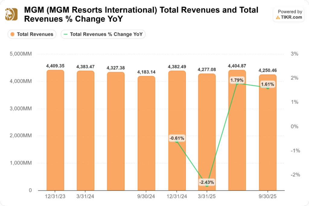 MGM posted a net loss of $285 million, primarily due to a $256 million impairment resulting from its withdrawal from the New York casino licensing process, as well as approximately $93 million in other non-cash write-offs related to Empire City.