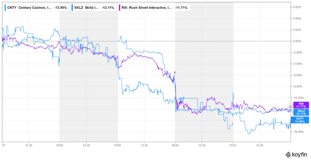 In what was yet another dismal week for gaming stocks, Robinhood and Las Vegas Sands managed to close in the green. Meanwhile, Century Casinos, Skillz, and Rush Street Interactive underperformed, experiencing double-digit declines.