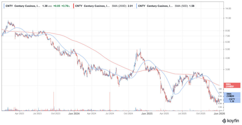 Century Casinos also made it to the list of top losers last week. While the stock saw upward price action on the first trading day of the year after announcing a $1.5 million share buyback program, which is nearly 4% of its market capitalization, losses in the first half of the week meant that CNTY finished the week in the red.