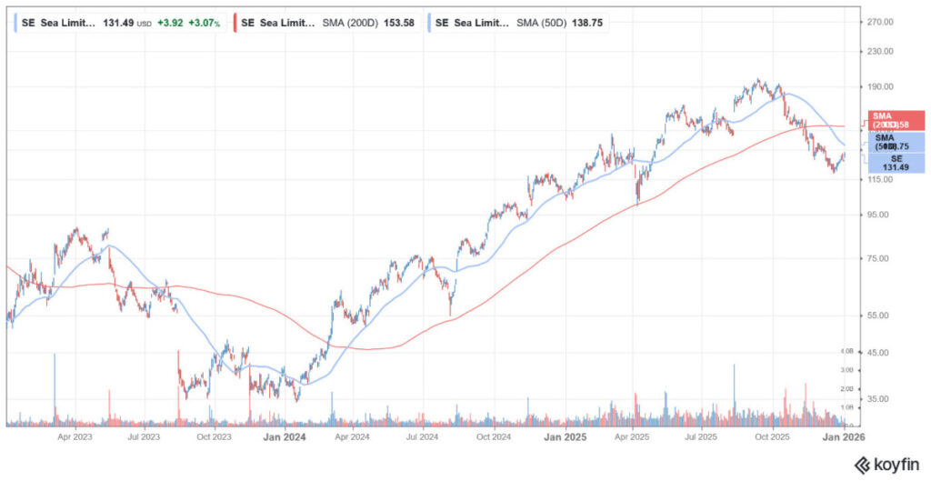 Notably, SE stock was quite strong in the first half of 2025, reaching a record high of $199.30. It, however, fell in the back half of the year as some analysts saw its valuations as stretched.
