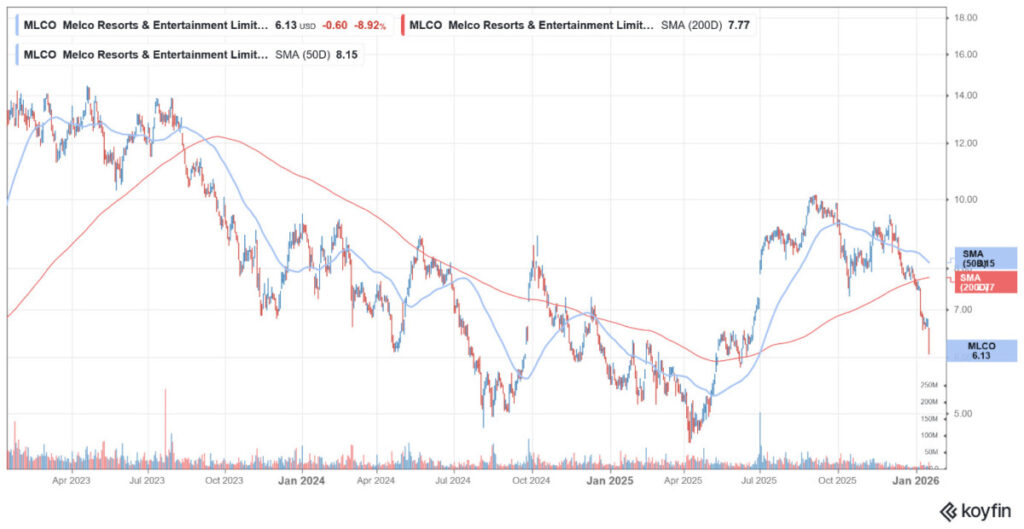 Melco Resorts & Entertainment (NYSE: MLCO) –7.82%