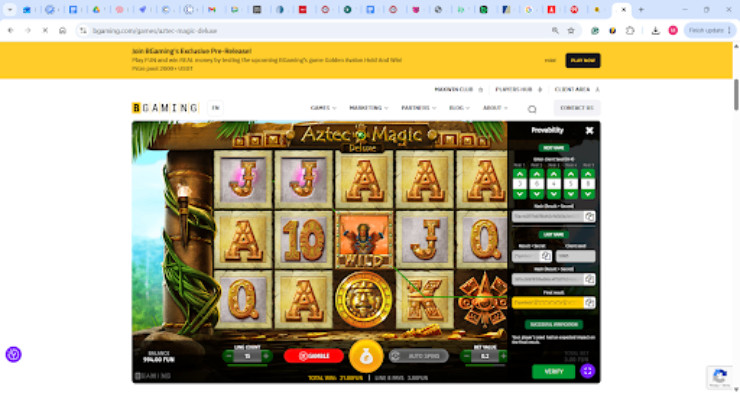 We’ve included an example of a BGaming Slot, Aztec Magic Deluxe, which offers provably fair mechanics and will walk you through how to verify it yourself for gaming transparency.