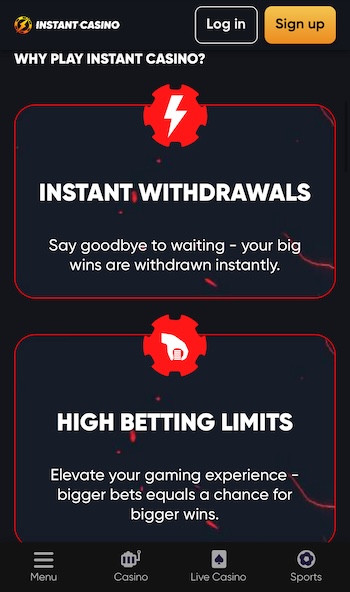 Instant Casino is the best instant withdrawal casino in Canada with no verification. You can join with very few personal details and receive payouts within minutes.