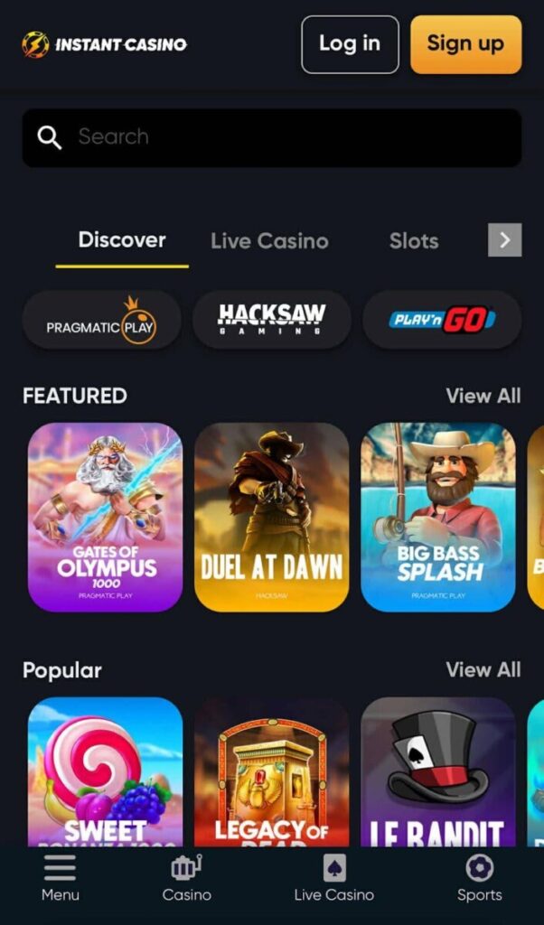 At Instant Casino, withdrawals are quick and hassle-free, with fast deposits available through Interac, bank cards, crypto, and Google Pay.
