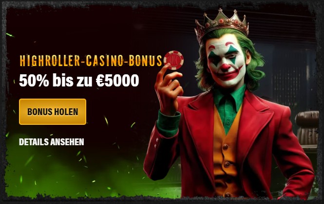 | High Roller Bonus: | 50 % Bonus bis 5.000 €; sofortiges Cashback |