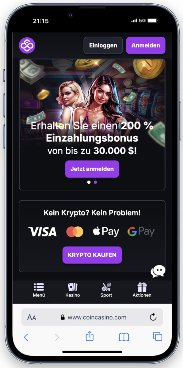 Ala Sahnehäubchen gibt es in diesem ohne OASIS Casino wöchentliche Boni bis zu 1.000 $ und spannende Turniere. Unterstützt von über 50 namhaften Software-Providern sorgt CoinCasino für höchste Qualität und Fairness im Casino. Die Plattform ist mobilfreundlich, einsteigerfreundlich und vollständig anonym. Egal ob Bitcoin, Ethereum oder Solana – Ein- und Auszahlungen werden schnell und sicher abgewicket. Wer echtes Casino-Feeling mit maximaler Freiheit sucht, ist hier goldrichtig.
