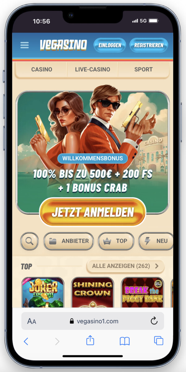 Auch das Live-Casino ist ein echtes Highlight: Blackjack-Tische, spannende Spielshows und große Jackpots machen jeden Besuch zum Erlebnis. Betrieben wird Vegasino mit einer Curacao-Lizenz, was für einen sicheren Rahmen sorgt – trotz der völligen Freiheit beim Einstieg. Wenn Sie auf Vielfalt stehen, ist Vegasino definitiv einen Besuch wert. Der Willkommensbonus überzeugt auch und ist fair, transparent und schnell verfügbar.