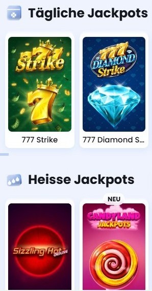 | Jokery Casino | 100% bis 1.500€ + 100 Freispiele | Slots, Tischspiele, Jackpots, Live Casino, Spezialspiele | SOFORT, Bank, VISA, Mastercard, Jeton, Krypto u. v. m. | keine |