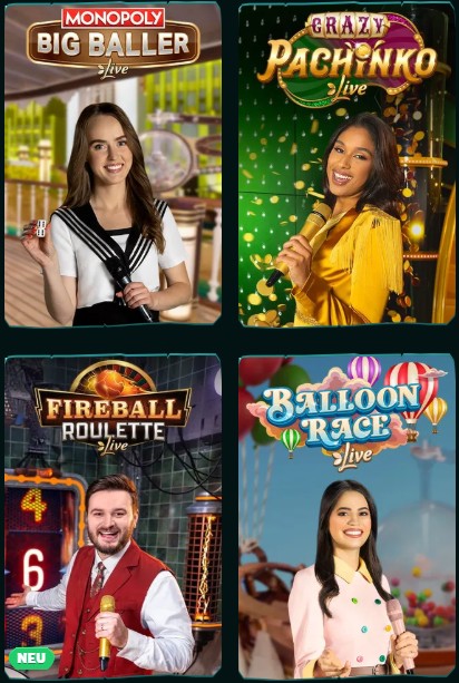 Die Auswahl an spannenden Casino Spielen ist riesig. Es gibt frisch gelauchte Slots sowie beliebte Klassiker wie Book of Ra, Live-Action mit Spielshows wie Monopoly oder Crazy Time und Klassiker wie Blackjack, Poker & Co. Tägliche Bonusaktionen, Turniere, Cashbacks und ein VIP-Programm, bei dem sich wirklich was tut, ergänzen das Angebot dieses empfehlenswerte ohne OASIS Casinos.