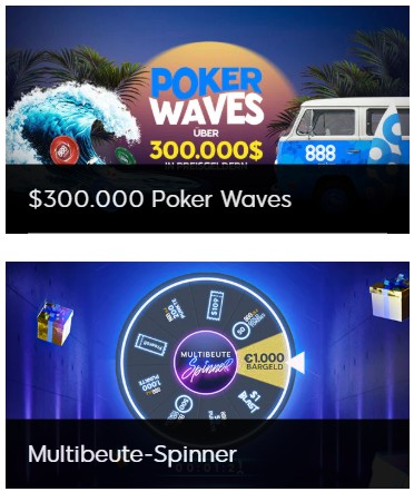 888poker bietet diverse attraktive Poker-Bonus-Aktionen, darunter einen Willkommensbonus von 100 % bis zu 200 € und Turniertickets im Wert von 30 €. Die Mindesteinzahlung für den Willkommensbonus beträgt 10 €, was besonders für Einsteiger attraktiv ist.