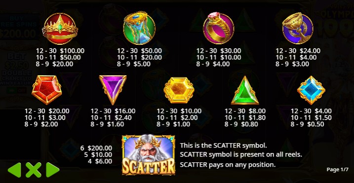 | Scatter (Zeus) | 6,00 € | 10,00 € | 200,00 € |