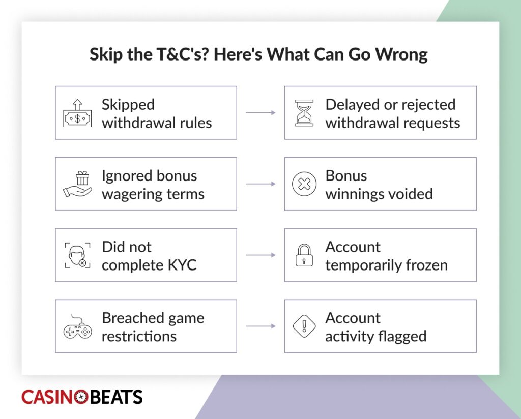 - Spending just five minutes on the fine print can save you from future problems such as frozen accounts, lost winnings, or other frustrating surprises. It’s the best way to play safely and confidently.