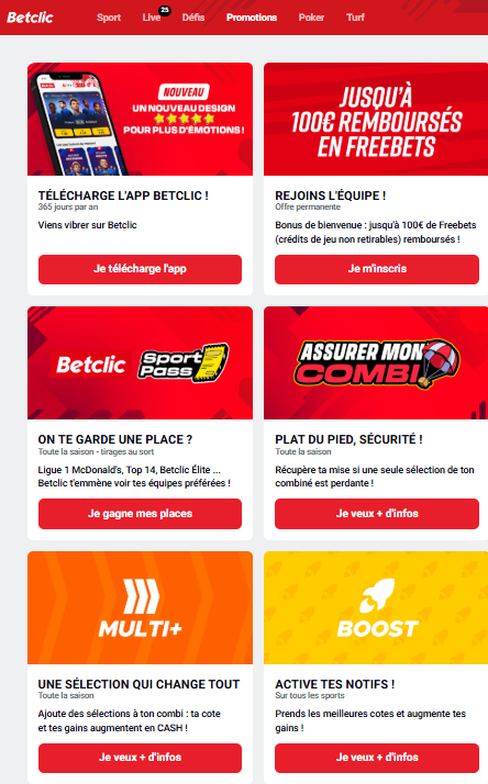 | Betclic | 100€ sport, 5€ poker, 100€ turf | Via Skrill, Neteller, Paypal, Paysafecard |