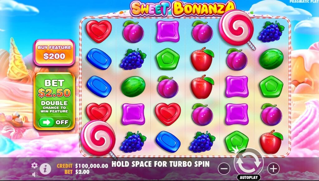 Sweet Bonanza est une machine à sous en ligne à six rouleaux recouverte de sucre, très populaire auprès des joueurs en ligne. Lancée en juin 2019, elle propose une grille de 6×5 sans lignes de paiement traditionnelles. Les gains sont déclenchés en obtenant huit symboles identiques ou plus n’importe où sur l’écran.