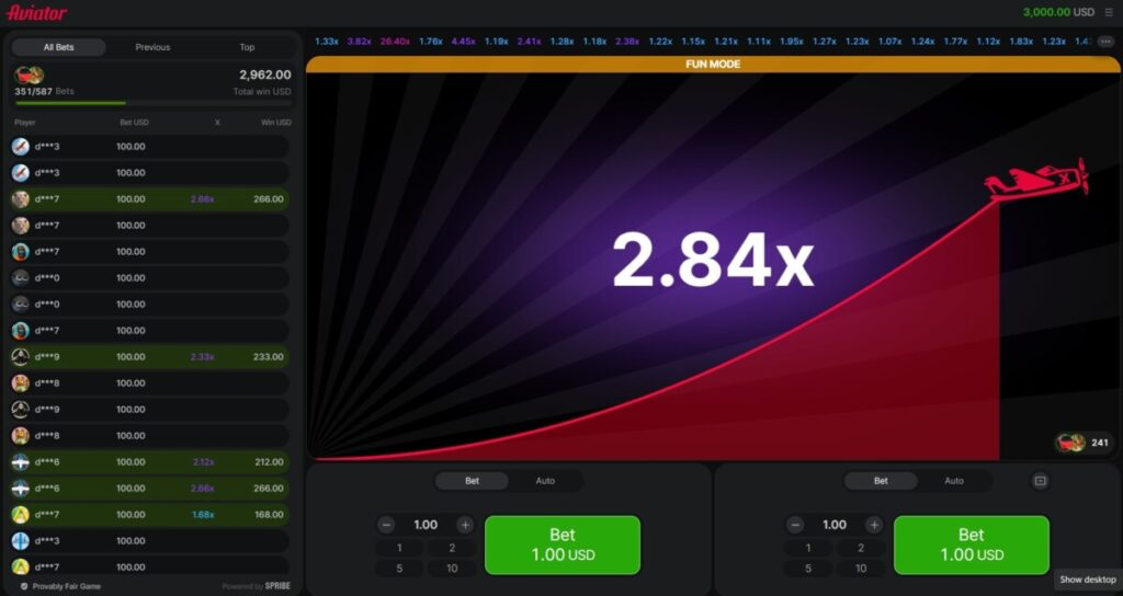 Aviator est l’un des jeux Crash les plus populaires. Vous regardez un petit avion rouge décoller, et à mesure que le multiplicateur grimpe, vous décidez quand encaisser ou bien si vous tentez votre chance pour décrocher un gain potentiellement plus élevé.