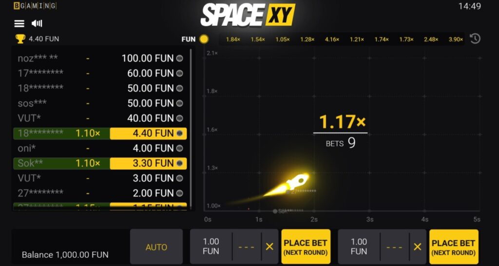 Situé dans l’espace, ce jeu Crash met en scène une fusée grimpant vers les étoiles. Il propose des options d’auto-pari et d’auto cash-out, et prend en charge les mises en crypto. Son interface épurée et son thème spatial séduisent particulièrement les amateurs de science-fiction.