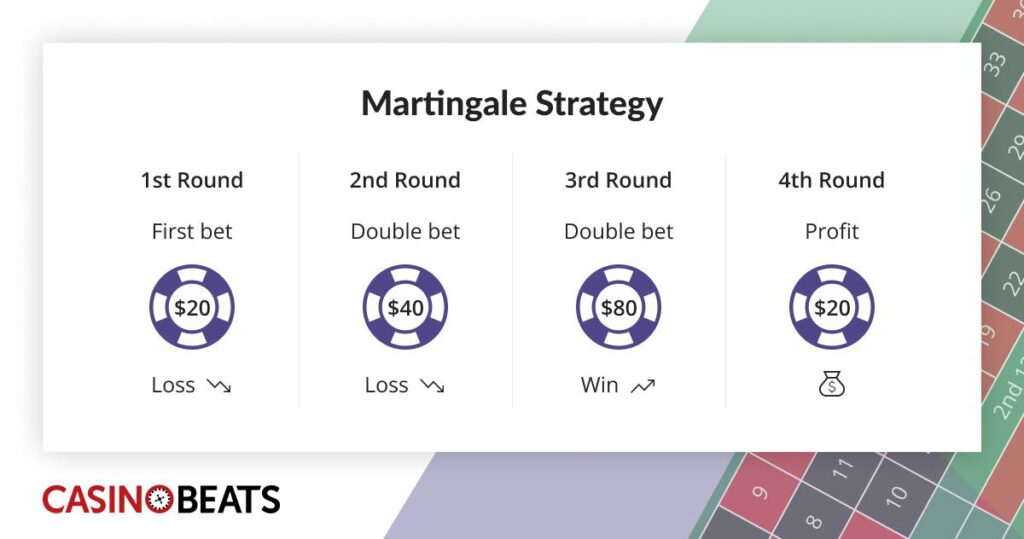 Le concept du système Martingale à la roulette est simple. Chaque fois que vous perdez, vous doublez votre mise pour le prochain tour. La théorie est que chaque victoire couvre les pertes précédemment subies.