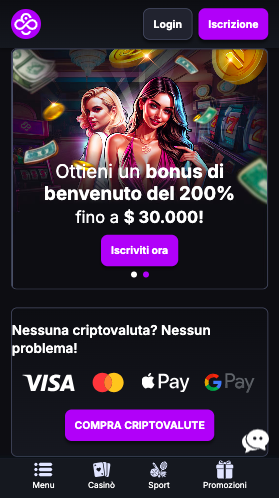 | Bonus di benvenuto | 200% fino a 30mila euro + 50 Super Spins |
