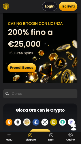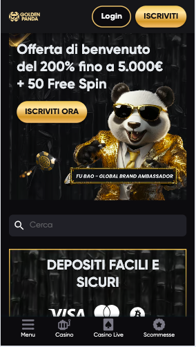 - Golden Panda – Casinò crypto con licenza estera, propone ai nuovi iscritti il 200% di welcome bonus, fino a 5mila euro, oltre a 50 giri gratis.