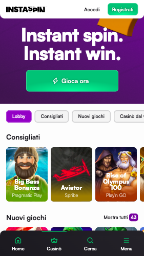 - Instaspin – Altro casinò crypto online in ascesa, riserva ai nuovi clienti 1.000 euro di bonus e 100 free spins in qualità di benvenuto.