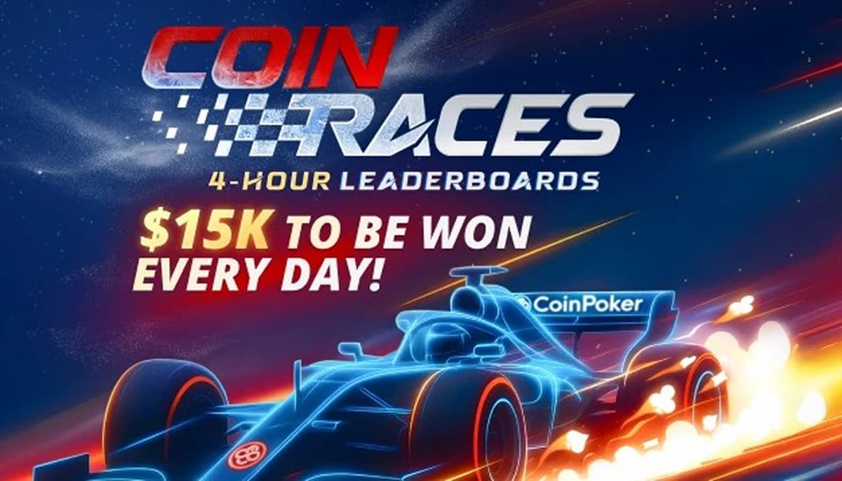 코인레이스는 4시간마다 리셋되는 캐시 게임 리더보드로, 하루 6번 우승 기회가 주어진다. 코인포커 전용 프로모션이며, 평소 캐시 게임에 추가 가치를 더해준다. 플레이 방식을 바꿀 필요 없다.