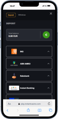 Dit is ook het moment om jouw bonus te claimen. Anders dan bij Nederlandse casino’s zijn de promoties van Instant Casino voor alle spelers vanaf 18 jaar. De 200% tot € 7500 welkomstbonus is beschikbaar bij stortingen vanaf €20. Storten kan onder andere met crypto, Apple Pay of iDEAL (via Yaspa).
