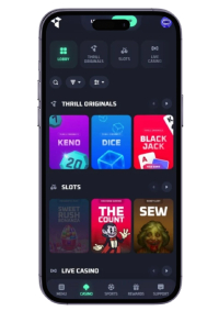 Het spelaanbod van dit crypto casino is uitgebreid met een combinatie van videoslots, tafelspellen en live casino spellen. Onder de rubriek met Bonus Buy-spellen vind je de spellen waar je vrijuit gebruik kan maken van de populaire in-game feature. Kijken we naar de rubriek Thrill Originals dan komen we exclusieve spellen tegen, waaronder instant win games zoals Plinko en Mines. Ook kun je bij Thrill wedden op sport, zoals voetbal, Formule 1 en esports. De laatstgenoemde wedmarkt vind je enkel bij internationale casino’s.