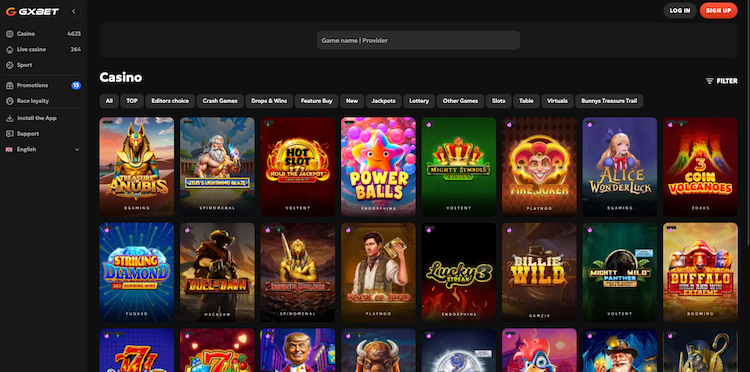 Bij Gxbet kun je kiezen uit spellen van verschillende spelontwikkelaars. Spelontwikkelaars die voorbij komen zijn Pragmatic Play, Spinominal, Fugaso, BGaming, Novomatic en Hacksaw Gaming.