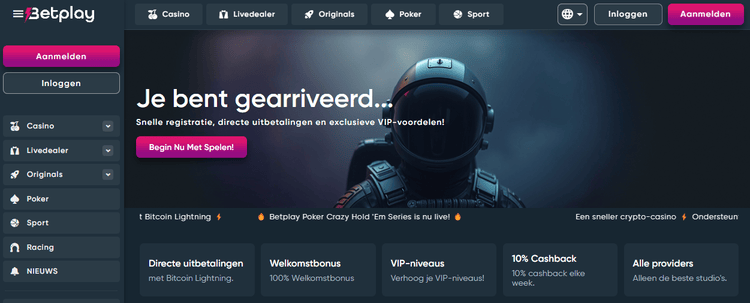 De demo spellen kun je al spelen bij dit casino zonder registratie. De welkomstbonus loopt op tot 1 BTC, mits je deze 80x rondspeelt. Registreren gaat in 5 stappen. De site is overzichtelijk, beschikbaar in 14 talen (ook Nederlands) en biedt live chat, e-mail en een uitgebreide FAQ. De AML-regels worden gehanteerd en er is KYC mogelijk bij uitbetaling, zo wordt de betrouwbaarheid en veiligheid van het platform gewaarborgd. De spellen zijn van o.a. Evolution, Pragmatic Play en Betpanda Originals.