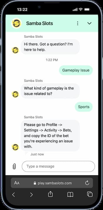 Zoek je snel hulp, dan is live chat 24/7 de kortste route blijkt uit deze Samba Slots reviews. Antwoorden komen meestal binnen enkele minuten en zijn handig als je midden in een spel vastloopt of een storting niet doorkomt. Er zijn wel meldingen dat de bereikbaarheid in piekuren kan wisselen, maar over het algemeen wordt de chat als goed ervaren.