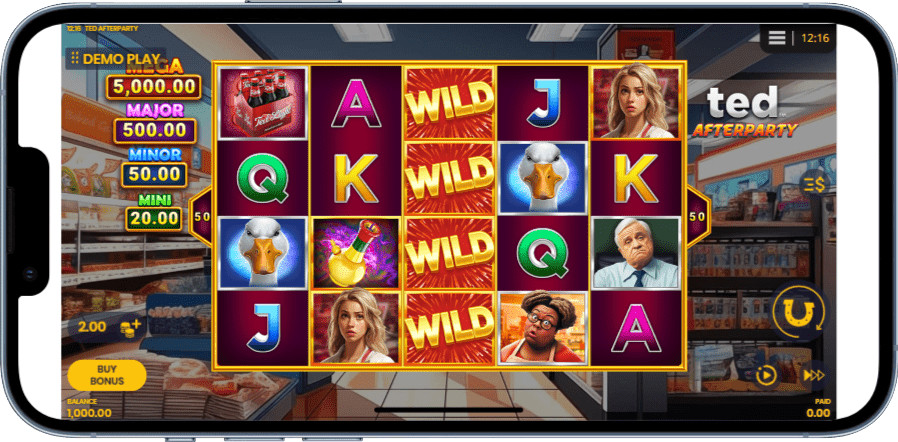 What it is: The next installment in the branded slot series based on Seth Macfarlane’s popular Ted movie, Ted Afterparty, is jam-packed with your favorite characters and symbols recognizable from the big screen.
