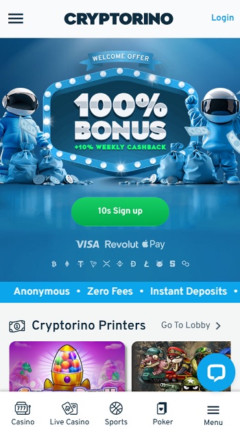 Cryptorino stands out with its big emphasis on cashback promotions, making it easy to stay in the game longer.