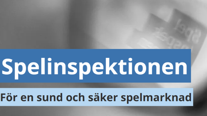 Spelinspektionens logotyp och slogan: "För en sund och säker spelmarknad" på suddig bakgrund.
