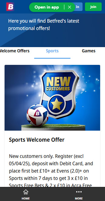 Place your first bet up to £50. If it loses, your stake is refunded as a bonus credit.